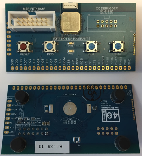 (2) Two BR-BOB-LE4.0-D2A, Dual Mode modules on populated Break out Boards, pictured (left) top and bottom view of board